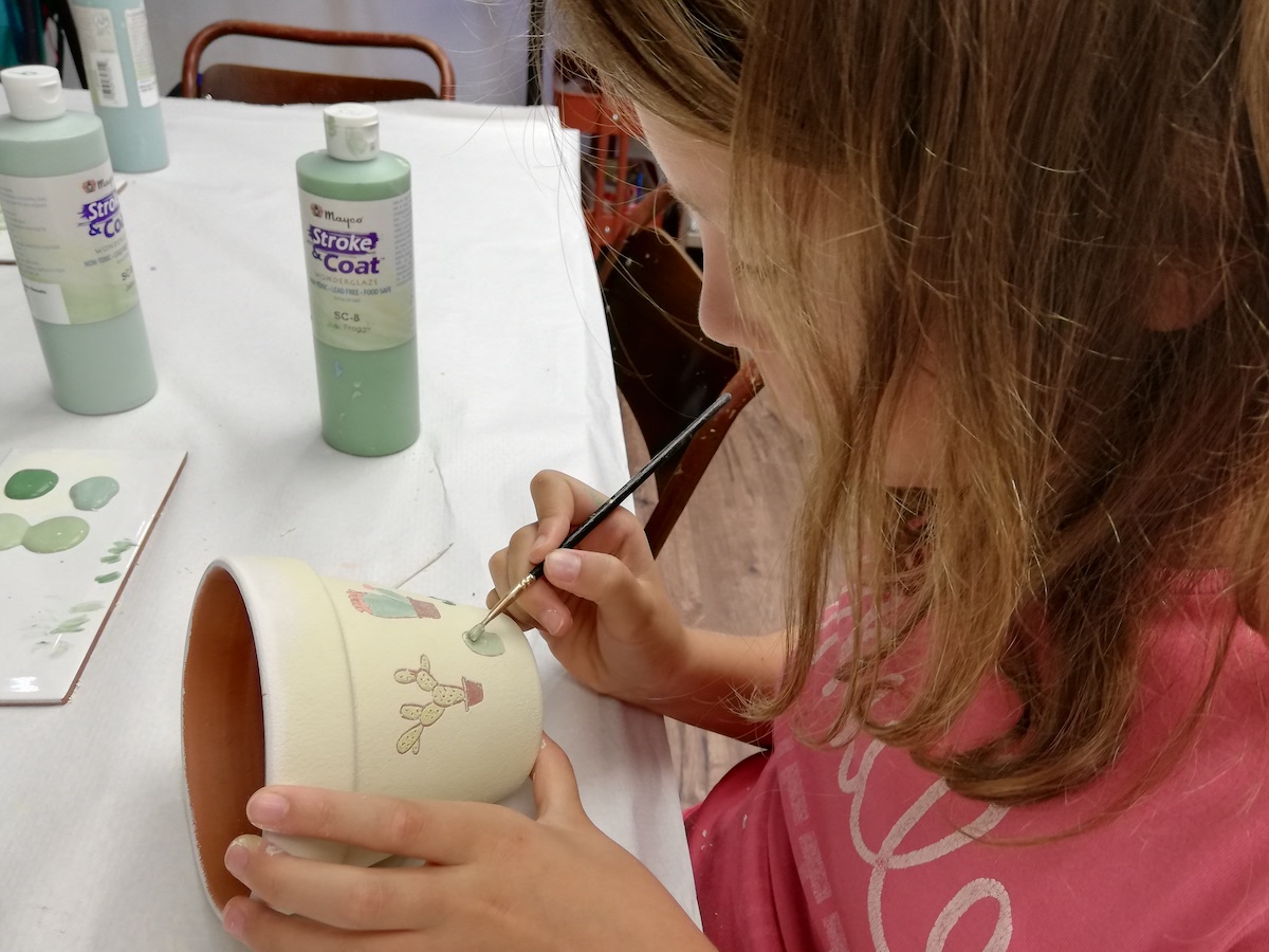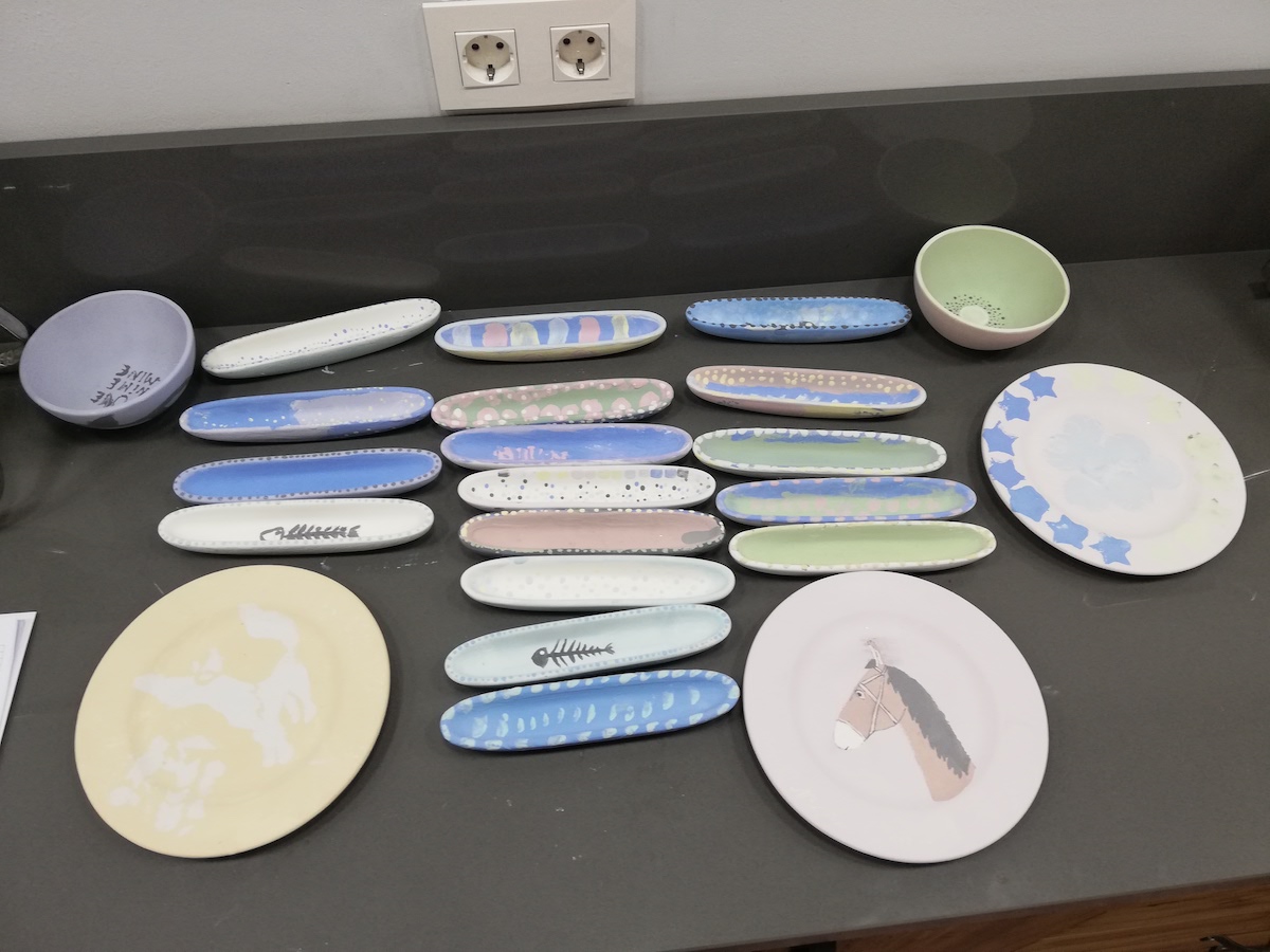 Cada matí ens trèiem la son amb una activitat de pintura de ceràmica, hem pintat i decorat moltes peces diferents: plats, bols, tasses, rajoles, gots, caixetes, un test i altres figuretes. Però no només creàvem una peça espectacular, apreníem una tècnica diferent en cada una de les peces. Tècniques? Sí, sí, com llegeixes! En el món de la pintura en ceràmica existeixen diferents tècniques de pintura, cada una d’elles aporten una estètica o una altra, cada una més espectacular! I quines són aquestes tècniques? Coneixes la tècnica de bombolles, pintura amb cordes, utilització de Stencil, tampons i plantilles de goma, el puntillisme, aquarel·la, reserva de blancs, degradat o l’esquitxat?